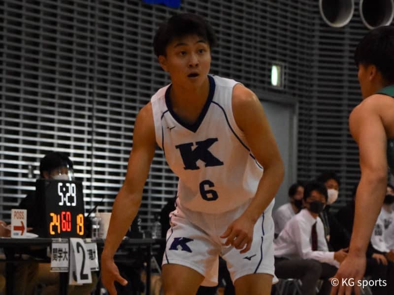 立ち上がりに先制点を献上してリードを奪われた関学だが、山際(商1)や北橋(経2)の3点シュートなどで点差を詰める。その後は相手に得点を許すも小西(経4)が得点し、10ー12で第1クオーター(Q)を終えた。続く第2Qは序盤に山際と北橋の3点シュートで7点リードを奪い、逆転に成功。ディフェンスも機能し、試合の主導権を握ったかに見えた。だが、終盤に相手の得点ペースが上がり、29-34で試合を折り返した。5点ビハインドで迎えた第3Qは山際の得点で同点に追いつき、反撃。しかし、相手の留学生選手の攻撃に苦しみ、43-49とビハインドのまま最終Qへ。運命の第4Qは宮内(商3)や山際が気迫溢れるプレーでチームを鼓舞するも要所で相手に得点を許してしまう。終盤に小西がセカンドチャンスをものにし、得点するが、惜しくもタイムアップ。56-59で惜敗し、リーグ戦2敗目を喫した。