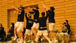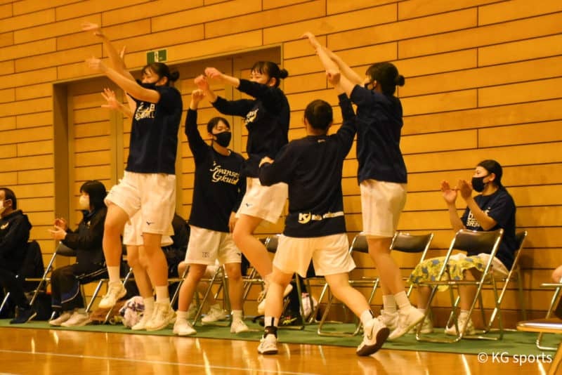 <写真・チームを盛り上げたベンチメンバーたち> 10月24日、天理大学杣之内第一体育館にて2021年度関西女子学生バスケ…