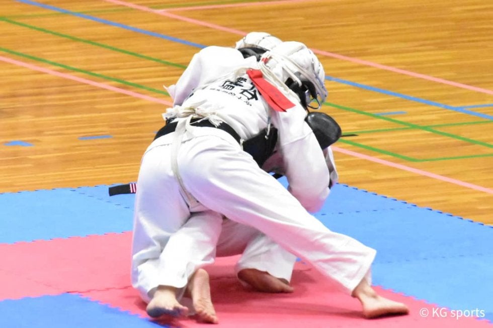 <写真・決勝で瀧花を押さえる塩谷>10月24日、名古屋市露橋スポーツセンターにて第36回全日本学生拳法個人選手権大会が行…