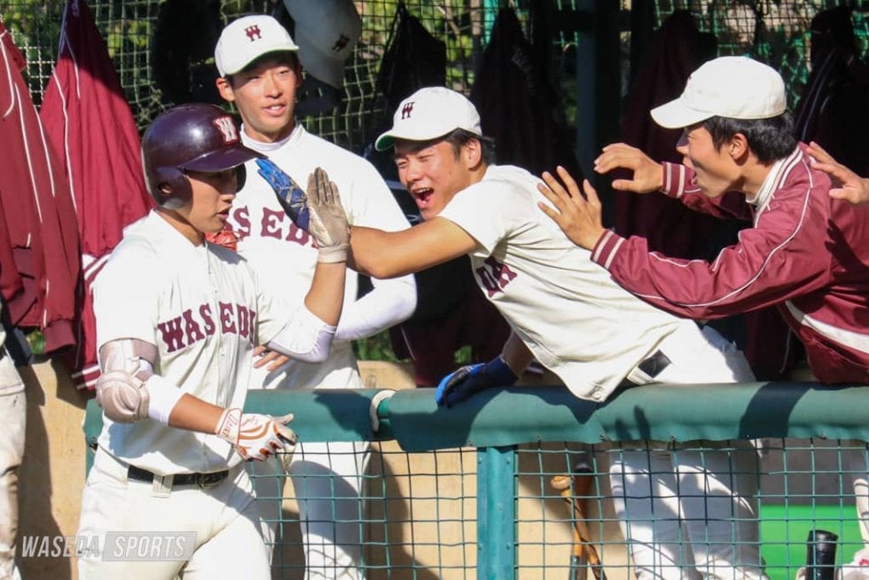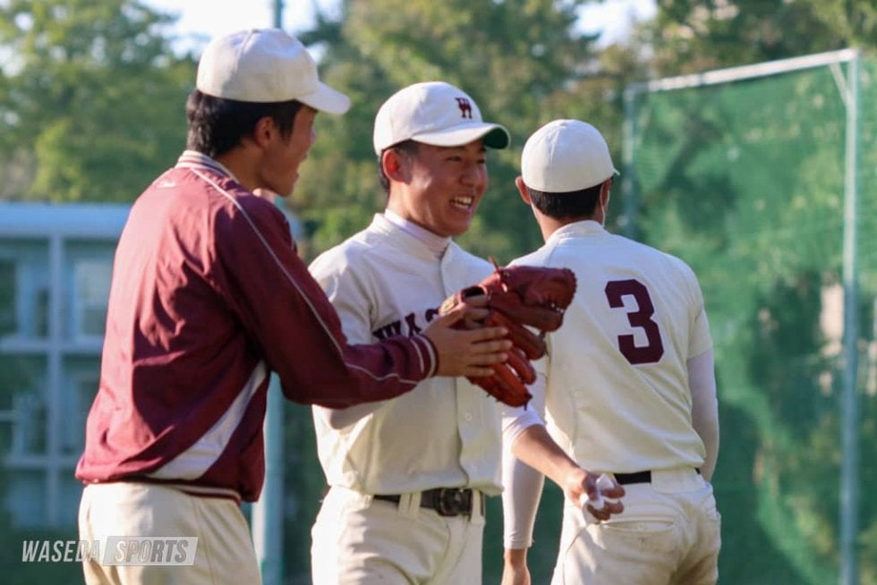 だが、この後は『あと一本』が出ない苦しい時間が続く。6回には服部峻也(社3=東京・早実)が内野安打で出塁すると、後続の働きで三進。だが、続く渡部の打球は惜しくも三塁手正面となり、追加点を奪えない。一方、継投陣は今井佑哉(社4=東京・早実)、清水佑樹(スポ4=早稲田佐賀)が相手打線を封殺。6回以降は両校一歩も譲らず、ゼロ行進で最後の攻撃を迎えた。