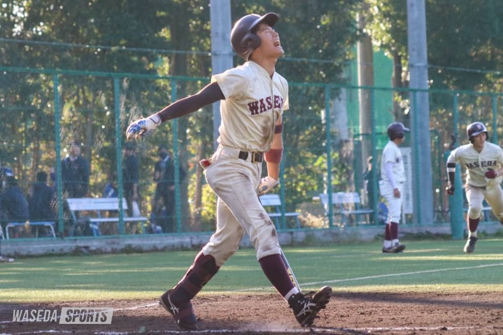 1点のビハインドを返すべく臨んだ最終回だったが、わずか2球で2死を取られてしまう。ここで渡部が主将の意地を見せ、安打を放ち出塁。ここから反撃を見せたかったが、次打者・須能浩太郎副将(商4=東京・早実)が二ゴロに倒れてゲームセット。4―3で試合を終え、リーグ戦は全体の5位で終えた。