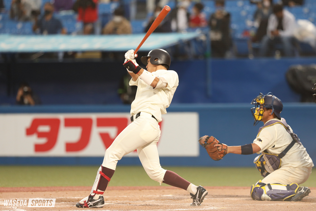伝えたいというよりかは、自分の姿を見てそれぞれが感じてほしいですね。もちろん最後早慶戦で勝って優勝するのがどれだけすごいか、どれだけ感動できるか、去年は自分たちがそれを教わった側なので、早慶戦で勝って優勝できる喜び、そういうのはもちろん伝えたいです。ただ、自分的にはやっぱり、何か伝えたいというよりは、大げさなことを言うと野球人生の集大成であって、今の4年生で野球を辞めるのは、今スタメンで出ている人で言うと自分と今井だけ。それ以外は野球を続けます。野球を辞める人間が最後どのように終わるのか、というのを何か一つでも感じてもらえれば、と思います。