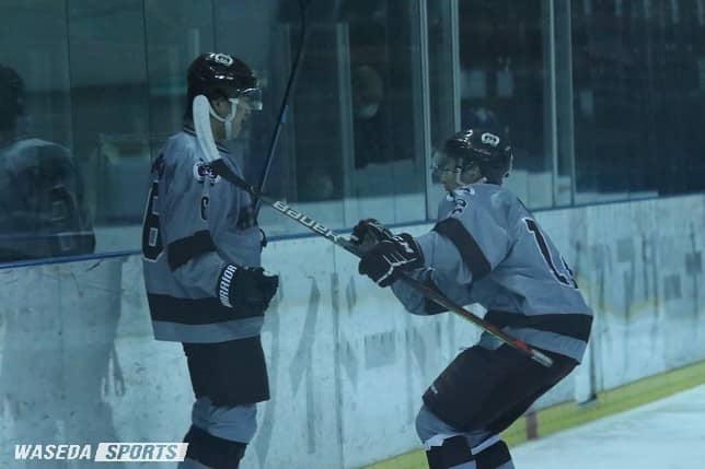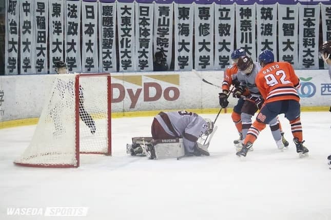 前回の試合、最終ピリオド(P)で逆転し、白星でスタートを切った関東大学リーグ戦特別大会(リーグ戦)。その勢いを保ったまま勝利を収めたい第2戦目の相手は法大。第1Pから先制点を挙げると、第2Pでも続けて得点を重ねた。最終P法大のシュートが決まると、続けてもう1点ゴールを入れられる。これ以上点を縮められたくない早大はその後しっかりとシュートを阻止し、相手に得点を許さず4―2で勝利した。