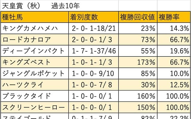 31日に東京競馬場で行われる天皇賞・秋(3歳上・GI・芝2000m)について血統・種牡馬別に検証していく。 過去10…