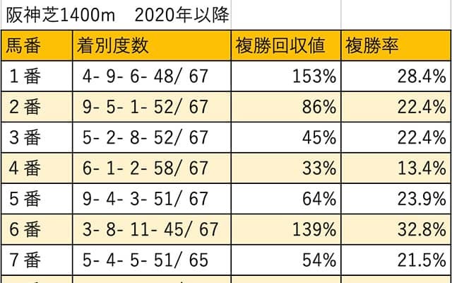 30日に阪神競馬場で行われるスワンS(3歳上・GII・芝1400m)について枠順・馬番別に検証していく。なお、今年は…
