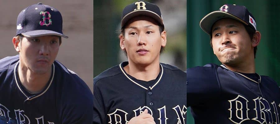オリックス・田嶋大樹、吉田正尚、宮城大弥(左から)【写真:荒川祐史】