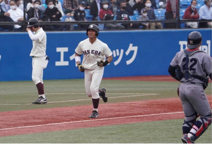 チームの勝利に貢献したい。「朝起きてから寝るまで、バッティングの事だけを考えていました」。小宮山悟監督からは「バットの軌道が遠回りしている。最短で、左手でボールを掴め」との助言も。明大戦を終えてからの2週間、自らと向き合い、絞り出した一打だった。