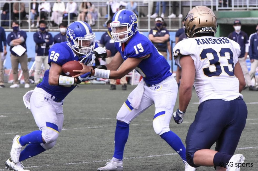 #15QB鎌田陽大(商2)「全体を通して、初歩的なミスが多い試合だった。関大は一度負けた相手ということで、勝たなければという使命感が前に出すぎて、変に気張ってしまった。また、スナップでの連携ミスなどもあったが、次戦までの2週間でしっかりと修正をしていきたい。(次戦に向けて)今年度初の立命大との対戦。強敵ではあるが、自分たちのフットボールをして、全力で臨みたい」