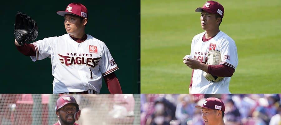 楽天・松井裕樹、早川隆久、安樂智大、オコエ瑠偉(左上から時計回り)【写真:荒川祐史】