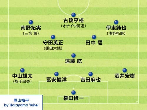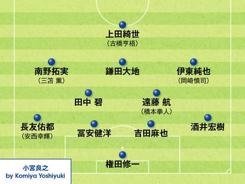 MF/南野拓実(前田大然)、鎌田大地(南野拓実)、伊東純也