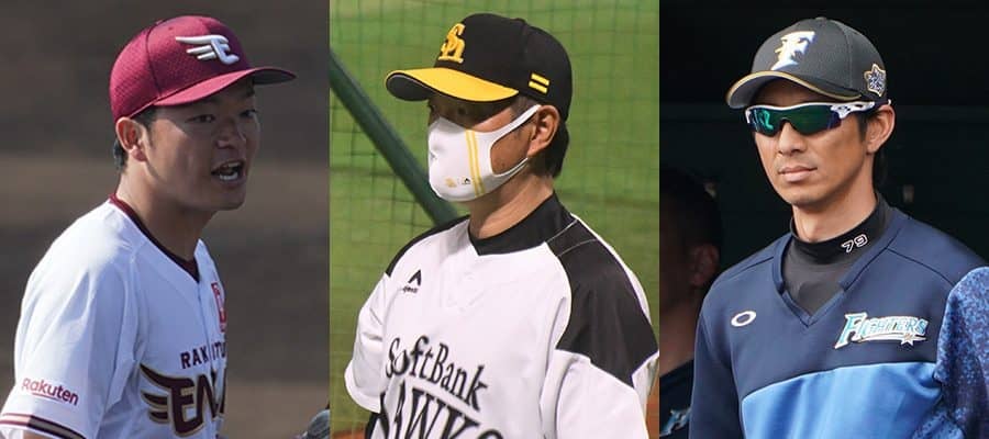 楽天・池田駿、ソフトバンク・小久保裕紀、日本ハム・城石憲之【写真:荒川祐史、藤浦一都】