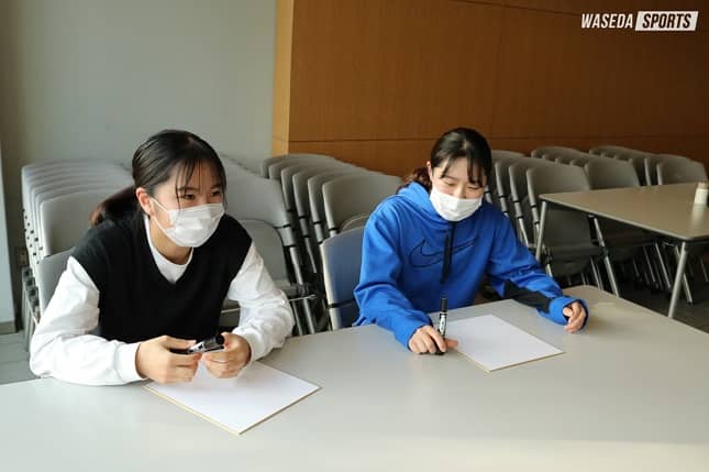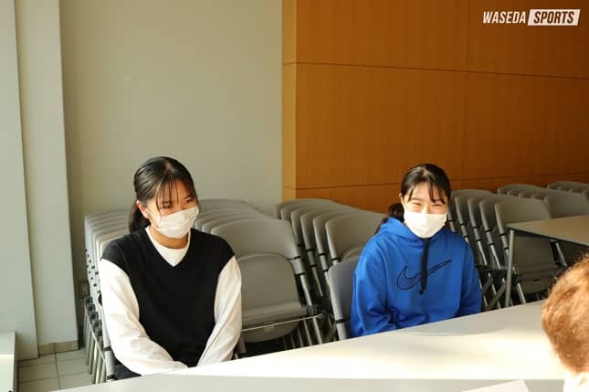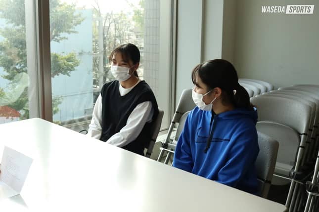 第2回は今年から出場時間を大きく伸ばし、チームの両サイドを担う白梅学園高出身の青木里奈(スポ2=東京・白梅学園)と木村百花(スポ1=東京・白梅学園)の2人です!