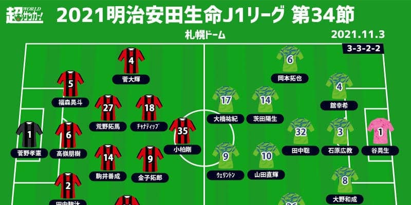 【明治安田生命J1リーグ第34節】 2021年11月3日(水) 16:00キックオフ 北海道コンサドーレ札幌(11位/4…