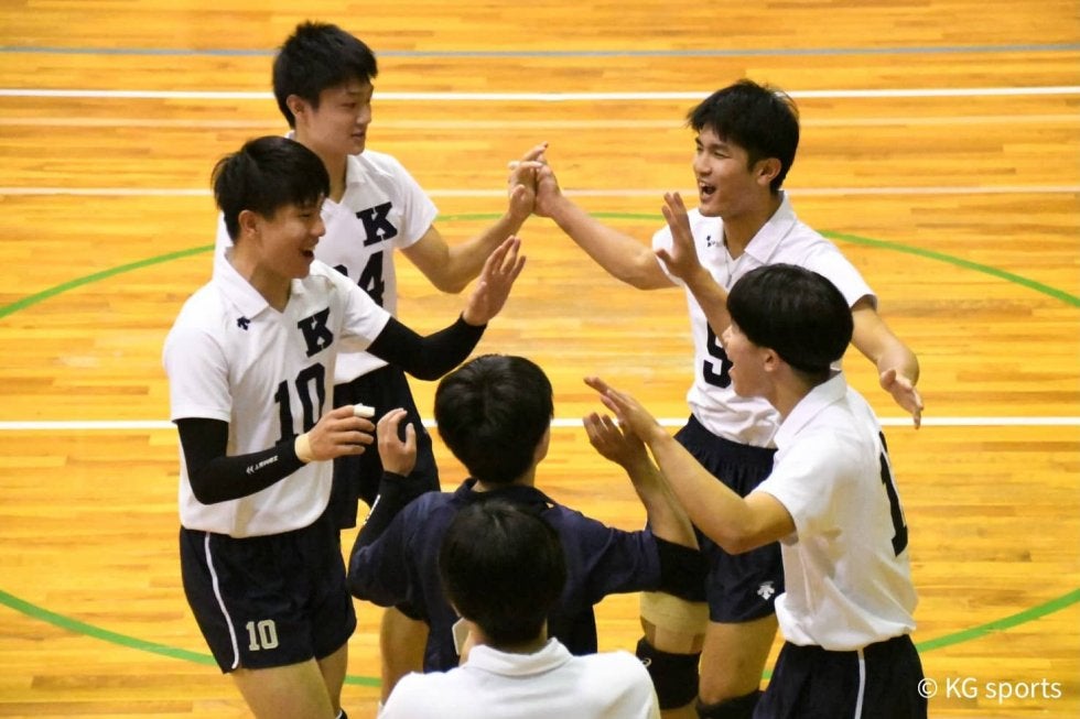 <写真・得点を決め、輪になって喜ぶ選手たち> 11月3日、2021年度関西大学バレーボール連盟秋季リーグ第10戦が行われ…