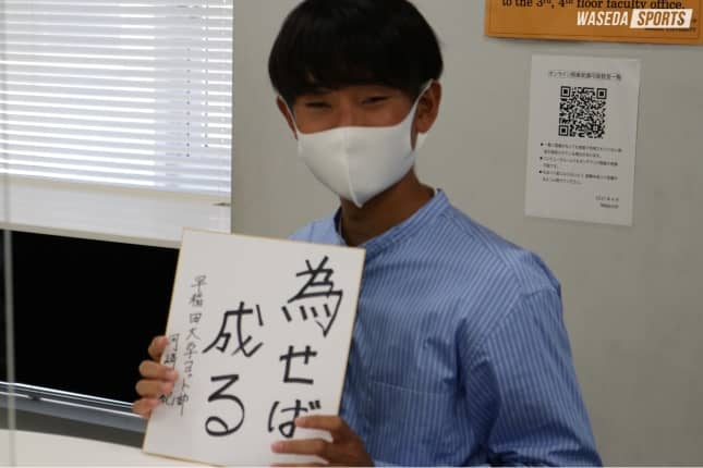 2001(平13)年10月12日生まれ。170センチ。神奈川・鎌倉学園高出身。スポーツ科学部2年。スナイプ級クルー。最後まで諦めなければ結果はついてくるということから、色紙には『為せば成る』と記してくれました。ひたむきに努力を続ける2年生クルーがチームに勢いをもたらします!