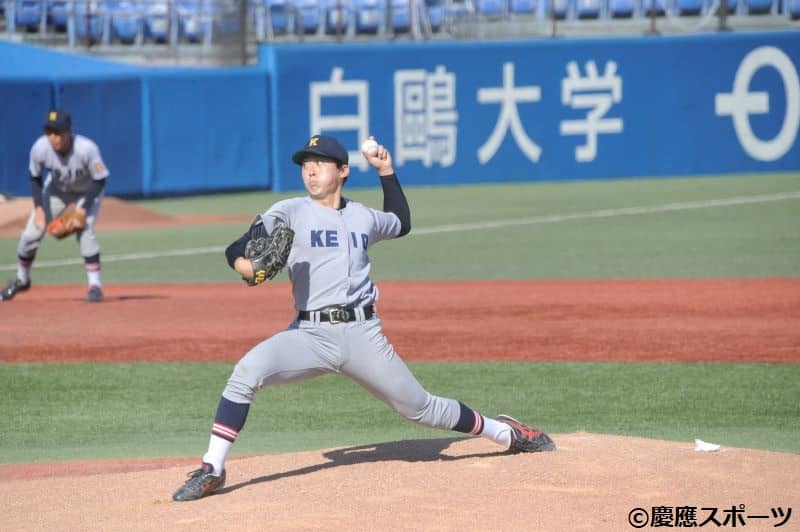 先発の左腕・森下試合が動いたのは2回表。先発の森下が5番・久島光太郎(政経2・城南)に出塁を許すと、2死二塁のピンチを迎える。ここで流れを断ち切りたい森下だったが、8番・菅原謙伸(政経2・花咲徳栄)の適時三塁打で1点を先制される。さらに、4回表にも慶大は野選で満塁のピンチを迎えると、代打・山口陸(経営2・日大鶴ヶ丘)の適時打で1点を追加される。続く菅原の内野ゴロの間にも得点を許し、点差を3点に広げられた。