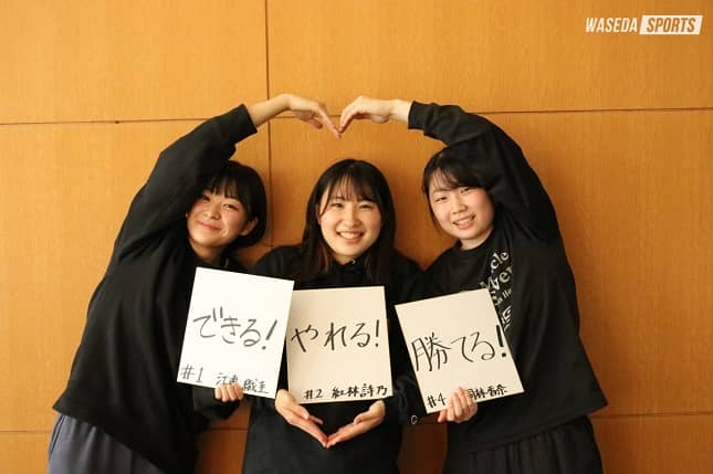 最終回となる第5回は仲の良い紅林詩乃主将(スポ4=東京・佼成学園女)、桐林香奈(商4=静岡・清水東)、江連織圭(スポ3…