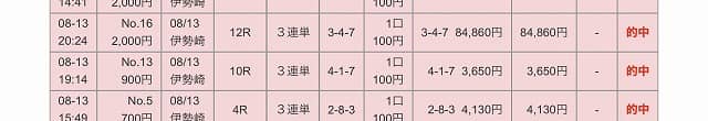 8月:回収率100% 万車券的中7本
