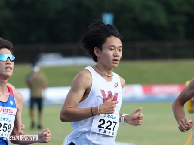 5000メートル13分36秒57と高校生トップクラスの成績で、佐久長聖高校から早稲田に入学した大物ルーキー。トラックシーズンで経験を積み、出雲では5区に起用された。期待を背負い出場したが、苦手とする暑さと風に阻まれ、区間20位中12位と悔しい結果に終わる。レース後には優勝を断ち切る走りをしてしまったと振り返った。出雲での悔しさをバネに18歳の大器は全日本での捲土重来を目指す