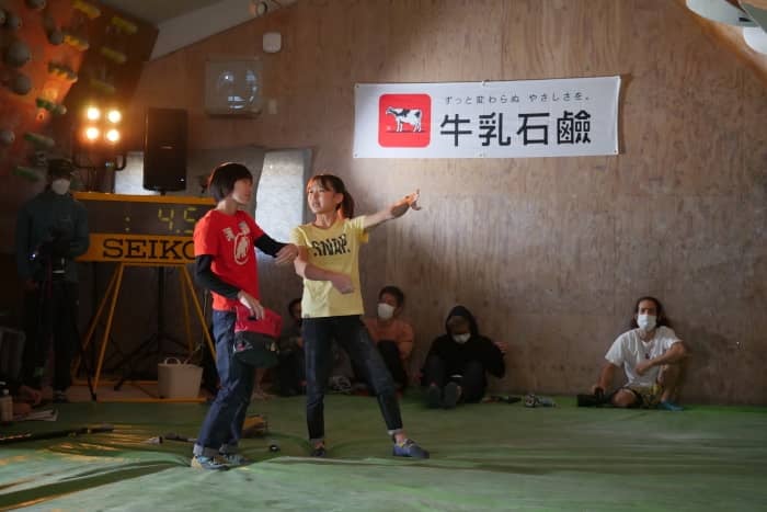 1試合1課題によるボルダリングのトーナメント戦、ボルダーバトル。女子の部には森秋彩、中村真緒、小池はな、平野夏海、阿部桃子、関川愛音、谷井菜月、田嶋あいかのファン投票で選ばれた8人が出場した。YouTubeのライブ配信で解説を務めた前回女王・野口啓代が見守る中、互いの登りを見ながらトライするセッション方式で大会は進行した。