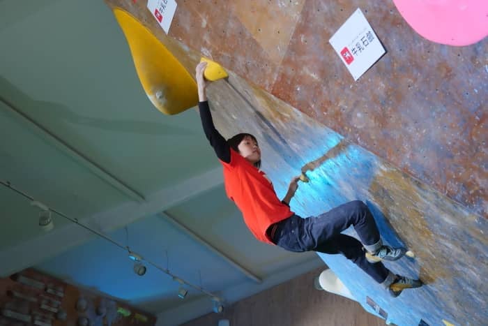 決勝課題を登る森。抜群の保持力を発揮し、優勝賞金50万円を手にした