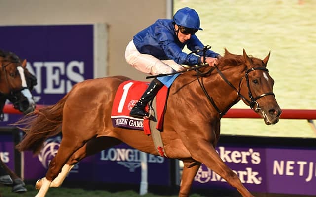 モダンゲームズは父Dubawi、母Modern Ideals、母の父New Approachという血統。イギリスのC.アップルビー厩舎の管理馬。前走タタソールズS(英G3)に続く重賞連勝で、G1は初制覇。通算成績は6戦4勝。