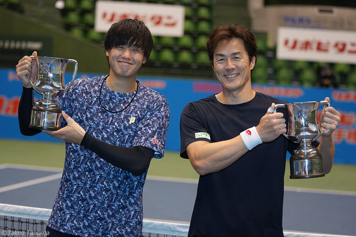 また、同日行われた男子ダブルス決勝では、第2シードの上杉/松井俊英(ASIA PARTNAERSHIP FUND)が、ネット際の強さを見せ、第3シードの清水/羽澤を6-1、7-6(3)で下して優勝。2017年に混合ダブルスでタイトルを獲得している上杉は、4年ぶりの全日本タイトルで、松井にとっては岩渕聡氏と制した2009年以来12年ぶりの優勝となった。