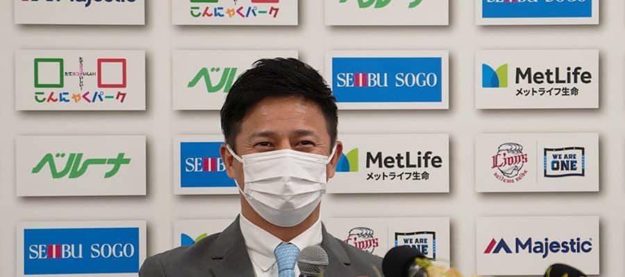 「西武入りを決断した後、大輔とは電話で話しました。ここにいる長田、(赤田)将吾(コーチ)、上本(達之コーチ)を含め、僕らの世代は横の繋がりが強くて仲がいい。それは大輔の存在が大きい。大輔はこれからも何らかの形でライオンズに携わってくれると、勝手に思っている。大輔とは(将来的に)一緒にやれたらいいねという話もしました」と平石コーチは今後の“共演”を熱望していた。(宮脇広久 / Hirohisa Miyawaki)