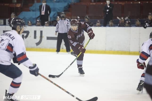 リーグ戦折り返しとなる4試合目の相手は、東洋大相手に熱戦を繰り広げた慶大。先制点を挙げその後も追加点を決めたが、中盤で流れを奪われそうになる。しかし、第2Pの後半の1点を皮切りに早大が立て直し、最終Pで1ゴールを許すが追いつかれることなく6-3で勝利を掴んだ。