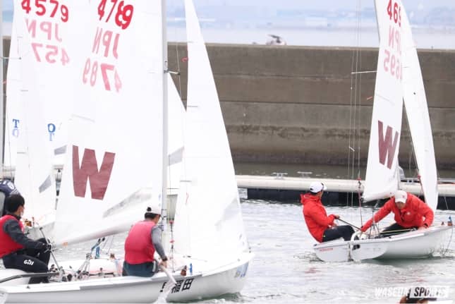 私は初日に出たのですが、その日は470チームとして安定していたと思います。次の日はかなり風が吹いて、田中丸(武、商2=早稲田佐賀)くんが出てくれました。そのレースで早稲田が10位以内にずっといるような感じだったので、そこですごく稼げたのかなと思います。