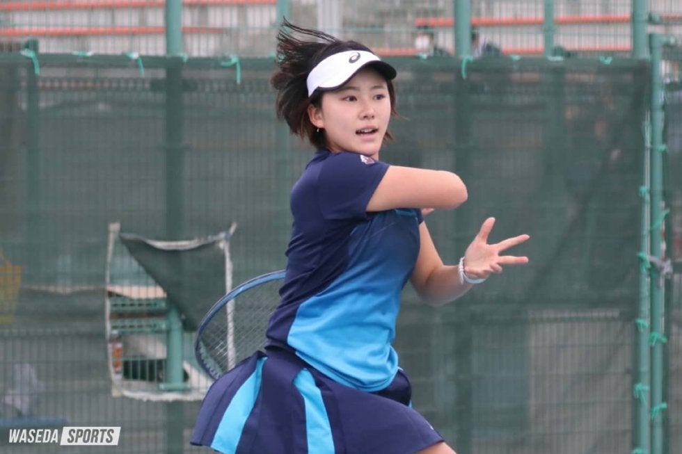 「自分たちのペースを乱さずにどっちもできた」(杉田主将)というように、ダブルスはどちらもストレート勝ちを収めた。王座出場校決定トーナメント(トーナメント)では3試合全てで勝利を持ち帰った石川琴実(社3=神奈川・白鵬女)、神鳥舞(スポ2=東京・早実)組はトーナメントの決勝に続いてのD1での出場。その実力をしっかり発揮して第1、第2セットともに相手に1ゲームしか与えずに勝利した。吉岡希紗(スポ3=三重・四日市商)、前田優歩(社3=沖縄尚学)組はこのペアで試合に出るのはトーナメントの準決勝以来。第2セットこそ相手に盛り返されかけたが、順当に1本をもたらした。