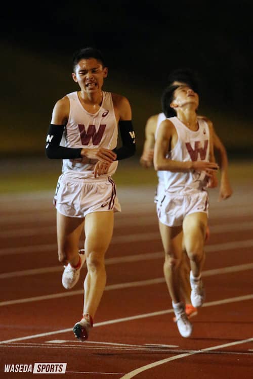 スタート直後から集団は2つに分かれた。先頭集団を半澤黎斗(スポ4=福島・学法石川)と安田博登(スポ3=千葉・市船橋)が1周66秒で引っ張り、第2集団は東京箱根間往復大学駅伝(箱根)ぶりに姿を見せた小指卓也(スポ3=福島・学法石川)が引く。それぞれの集団は3000メートルまで一定のペースを刻んだ後、フリーに。すると「3000メートルまでは余裕を持って入って、残りは上げられるところまで上げていこう」とのプランで臨んだ河合が一人集団を抜け出した。順調に練習を積めているとの言葉通り、最後まで単独で押し切ると、チームトップの全体5番手でゴール。そしてそのおよそ5秒後には、後続も続々ゴールし、和田、白井航平(文構3=愛知・豊橋東)、菅野雄太(教1=埼玉・西武文理)、日野斗馬(商1=愛媛・松山東)が自己新記録をマークした。