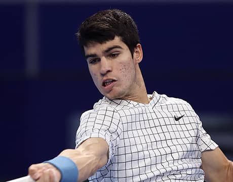 男子テニスの21歳以下最終戦 インテサ・サンパオロ・Next Gen ATPファイナルズ(イタリア/ミラノ、室内ハード)は11日、グループAの第3戦が行われ、世界ランク32位のC・アルカラス(スペイン)が同91位のJ・セルンドロ(アルゼンチン)を4-0, 4-1, 2-4, 4-3 (7-3)で破り、3連勝を飾った。