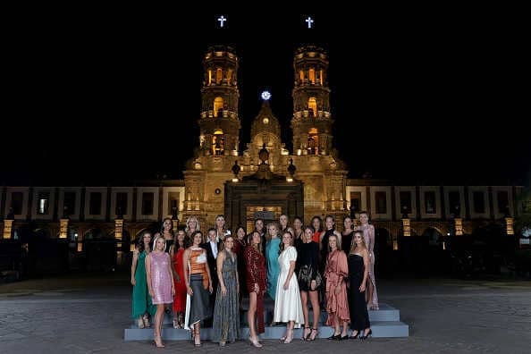 サパポン大聖堂前での出場選手ら。2列目中央に青山、その右に柴原