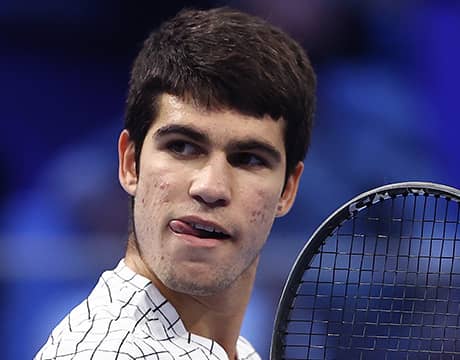 男子テニスの21歳以下最終戦 インテサ・サンパオロ・Next Gen ATPファイナルズ(イタリア/ミラノ、室内ハード)は12日、準決勝が行われ、世界ランク32位のC・アルカラス(スペイン)が同111位のS・バエス(アルゼンチン)を4-2, 4-1, 4-2のストレートで退け、決勝進出を決めた。