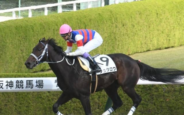 13日、阪神競馬場4Rで行われた新馬戦(2歳・ダ1800m・10頭)は、3番手の外に付けた武豊騎手騎乗の2番人気ジュタロウ(牡2、栗東・河内洋厩舎)が、3コーナーで先頭に立つと後続をどんどん突き放し、最後は2着の4番人気ニューダイアリーズ(牡2、栗東・杉山晴紀厩舎)に2.4秒の大差をつけ優勝した。勝ちタイムは1分53秒6(稍重)。