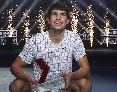 男子テニスの21歳以下最終戦 インテサ・サンパオロ・Next Gen ATPファイナルズ(イタリア/ミラノ、室内ハード)は13日、決勝が行われ、第1シードのC・アルカラス(スペイン)が第2シードのS・コルダ(アメリカ)を4-3 (7-5), 4-2, 4-2のストレートで破り、初優勝を飾った。