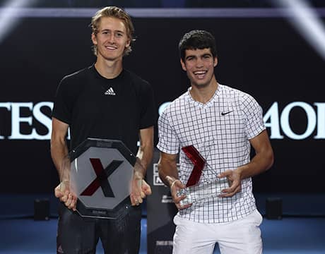 男子テニスの21歳以下最終戦 インテサ・サンパオロ・Next Gen ATPファイナルズ(イタリア/ミラノ、室内ハード)は13日、決勝が行われ、第2シードのS・コルダ(アメリカ)は第1シードのC・アルカラス(スペイン)に3-4 (5-7), 2-4, 2-4のストレートで敗れ、タイトル獲得とはならなかった。