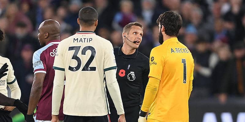 リバプールのブラジル代表GKアリソン・ベッカーは、ウェストハム戦での自身に対する判定に未だに納得がいっていないようだ。 …