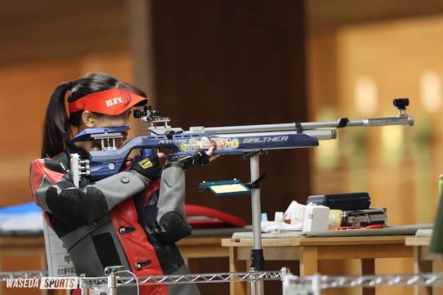 早慶戦で今回できなかったことを改善していきたいと思っているのですが、3×20のK(膝射)が一番納得いっていなくて。銃を持つ前に体の感覚や重心、基礎から作り直していきたいと思っています。またP(伏射)で今回、満射ではなく99点というのが2回続いてしまったのですが、そういった緊張感のあるところできちんと満射できるように練習を繰り返したいと思っています。S(立射)ではもう少し構銃、構える回数を増やして、ARとSB(スモールボアライフル)のSは銃の重さやバランスも変わってくるので、Sの姿勢を取って、もっと銃のバランスをきちんと理解して、残りの2、3週間の期間で今回できなかったことをリベンジするというか。改善していきたいです。