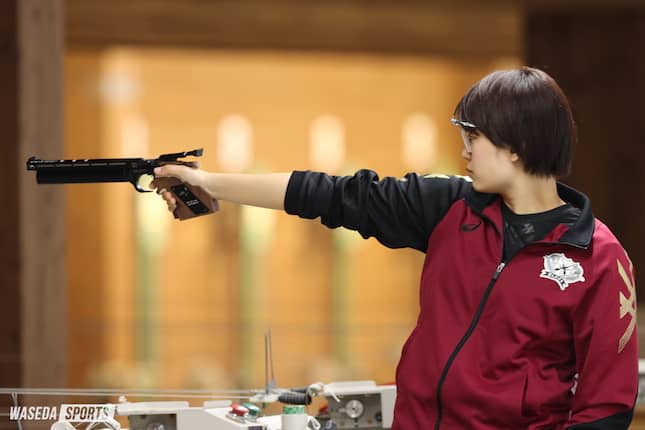 元々射撃に興味があって。小さい頃にオリンピックの競技として射撃があるのをみて、それをみてから射撃をやってみたいなというのがあって。でもなかなか日本で射撃や銃を扱えることはないことですし、やはり大学で射撃部があるところもそんなに多くはないと思うので、早稲田大学に入学が決まって、射撃部があるということで、せっかくならやってみようかなと見学に行ってみて。すごく部の雰囲気が良かったので入部を決めました。