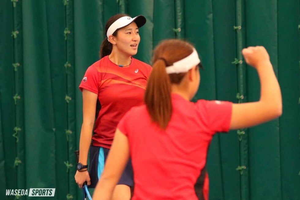 D2の石川琴実(社3=神奈川・白鵬女)・神鳥舞(スポ2=東京・早実)は佐藤南帆・永田杏里組と対戦。王座出場校決定トーナメント(トーナメント)決勝ではフルセットの末に破ったが、その試合の再現とはいかなかった。第1セットを2-6で落として迎えた第2セット。互いにサービスキープし合う展開の中で試合の主導権は早大ペアにあるかと思われたが、こちらも大事なポイントを奪えずなかなかブレークができない。並行カウントで迎えた第10ゲームでリターンから攻められて敗戦。ストレート負けを喫した。