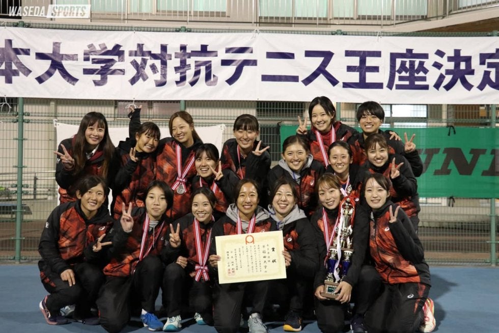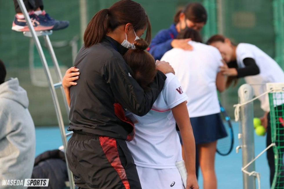 悲願の王座奪還を果たすことはできなかった。全日本大学対抗王座決定試合(王座)決勝。早大は学生テニス界でトップクラスの戦力を誇る慶大との一戦に臨んだ。ここまでチャレンジャーとしての気持ちを持ち、一戦一戦を乗り越えるごとに進化してきた早大。この大一番でその成果を見せたかったが、ダブルスで0-2とされると、シングルスでも勝利を挙げられず、慶大に0-5の完敗。この約1年間、チーム一丸となって挑んだ王座奪還という目標を達成することは叶わなかった。選手ではないながらもサポートとして支え続けた4年生はこれで引退。王座奪還は今年の団体戦を戦った選手たちを中心とする後輩たちへと託されることとなった。