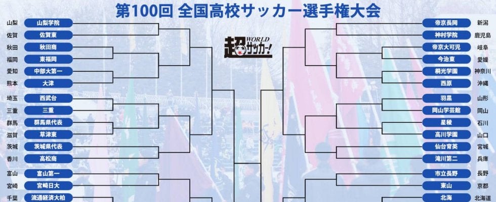 記念すべき第100回全国高校サッカー選手権大会の組み合わせ抽選会が15日に開催。対戦カードが決定した。 出場校が決定して…