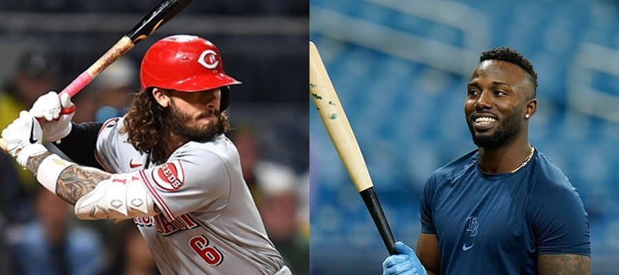 レッズのジョナサン・インディア(左)、レイズのランディ・アロサレーナ【写真:Getty Images、AP】
