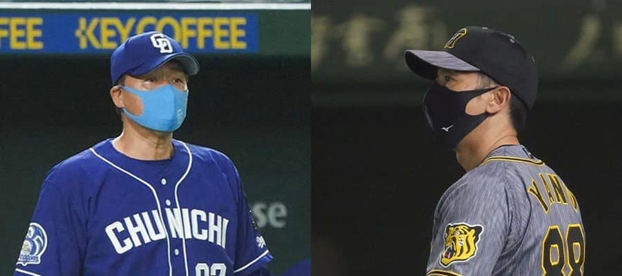 中日・与田剛前監督(左)、阪神・矢野燿大監督【写真:荒川祐史】
