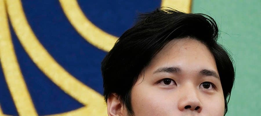 15日に日本で凱旋会見、スーツ姿で登場 米大リーグ・エンゼルスの大谷翔平投手は15日、都内の日本記者クラブで記者会見を行…