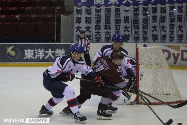 関東大学リーグ戦特別大会も後半に差し掛かった。ここまで負け無しの早大は、春に行われた関東大学選手権で全体2位、直接対決では2-3で破れている中央大学と対戦した。第1ピリオド(P)は互いに得点無しの互角の戦いを見せるものの、第2Pで立て続けに4点を取られる。最終Pで1点を返すも追いつけず、1-4で敗戦を喫した。