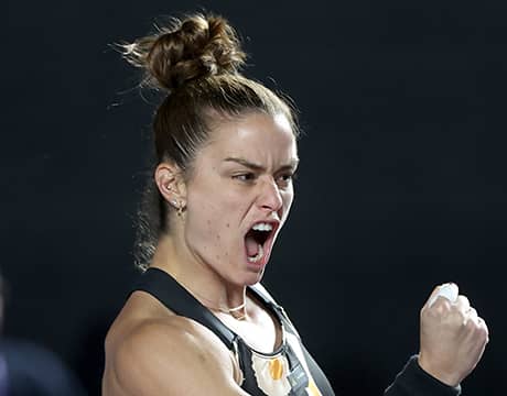 女子テニスの最終戦 アクロンWTAファイナルズ・グアダラハラ(メキシコ、室内ハード)は15日、グループ・チチェン・イッツァの第3戦が行われ、第4シードのM・サッカリ(ギリシャ)が第1シードのA・サバレンカ(ベラルーシ)を7-6 (7-1), 6-7 (6-8), 6-3のフルセットで破り、2勝1敗で2位通過を果たし決勝トーナメントへ進出した。