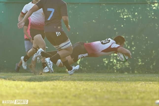 後半が始まると、CTB岡本大輝(スポ2=東京・本郷)がハーフラインでこぼれ球を拾う。そこから一気に敵陣22メートルラインまで駆け上がり、CTB三浦称児(人2=大分舞鶴)のパスからフランカー永瀬功太郎(文構4=東京・早実)がトライ。10-12と点差を縮めた。しかしその直後、ディフェンスの間を素早く抜かれ、あっという間にトライを許し、再び点差は7点に。その後も東海大の猛攻は止まらない。後半15分には、モールを作りながらじわじわと攻め込まれる。堅守で必死に対応する早大だったが、あと一歩こらえきれず、失点。後半30分にも、再びラインアウトを与えると、フェーズを重ねられ被トライ。10-31と点差が開く。このまま試合が終わるかと思われたが、終了間際、全員でボールを運び、SH桝谷連太郎(スポ1=東京・本郷)がトライ。最後に早大の意地を見せたものの、17-31でノーサイドとなった。
